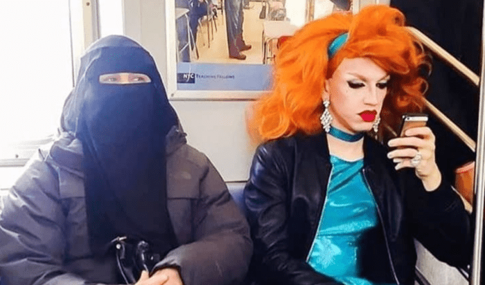 Energetyczna drag queen w ognistej peruce i makijażu siedzi obok kobiety w hidżabie. Kontrast jest po prostu uderzający. Scena przypomina połączenie „The Real Housewives of New York” z codziennością. To doskonały przykład tego, jak różnorodne może być metro.
