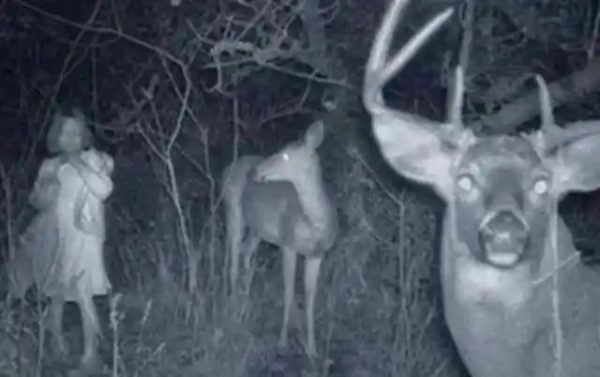 Chiar și camerele video de urmărire pot fi păcălite. Această fotografie „celebră” arată ceea ce se pretinde a fi o „fată fantomă” care se plimbă printr-o poiană noaptea.