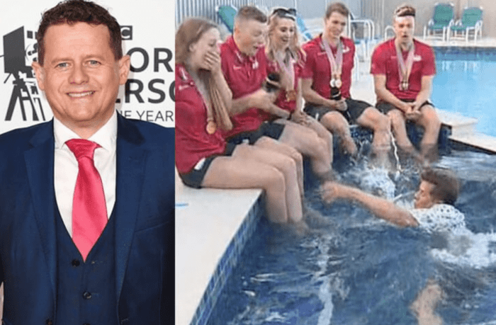 Prezentatorul de sport al BBC Mike Bushell a intervievat mai mulți înotători, printre care Adam Peaty. A căzut în piscină, în ciuda avertismentelor să fie atent pe unde pășește. Jurnalistul BBC s-a udat și i-a fost distrus microfonul. Wow!