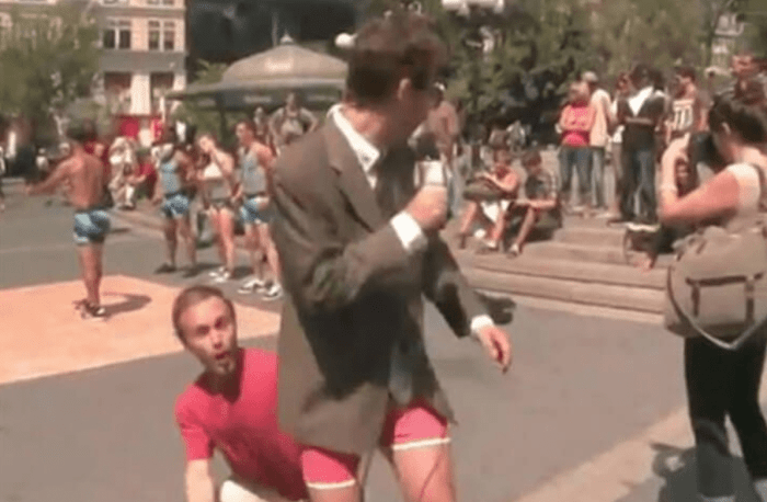 Incidentul a avut loc în Piața Washington. Cine a făcut-o? I-au dat jos pantalonii jurnalistului în fața camerei. Jurnalistul a fost atât de șocat încât nu l-a putut urmări pe fars. Cameramanul s-a mutat în mulțime, dar era prea târziu.