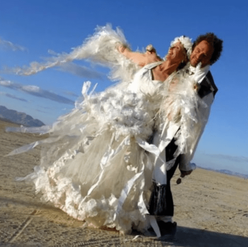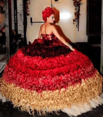 Forget satin, silk, or tulle—this bride went straight for shock value. Her gown was made entirely of real human hair. Over 250 meters of it. While that’s certainly a conversation starter, it’s also a bit nightmarish —more suited to a horror movie than a honeymoon. You have to admire the craftsmanship, but the concept? Let’s say it gives “hair-raising” a whole new meaning.