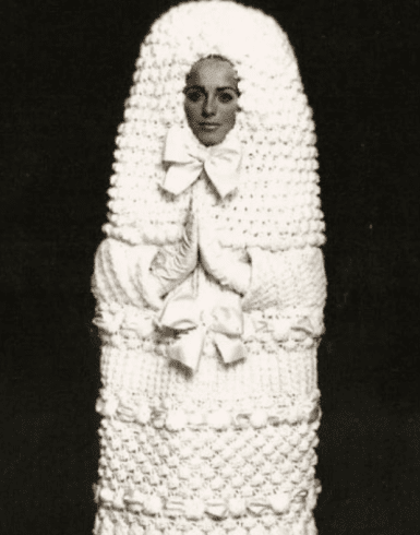 In 1965, a designer decided to reimagine bridal fashion with a Russian nesting-doll-inspired gown. The idea was to create soft, layered curves that enveloped the bride in sculptural elegance. The result, however, landed somewhere between “art experiment” and “laundry bag.” It’s one of those looks that make you appreciate why specific trends never come back.